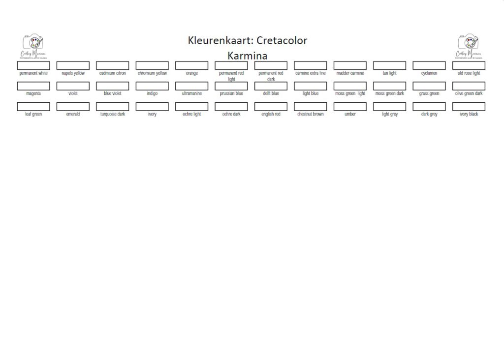 Below are the blank stencils with the same brand color numbers as  shown in the tutorials. Click on the image to enlarge, rightclick on the enlarged image to save. When printing I advise you to print on thicker printing paper with a slight grain or to draw the actual exercises on pastelmat and then cut those out and stick those on the printed paper